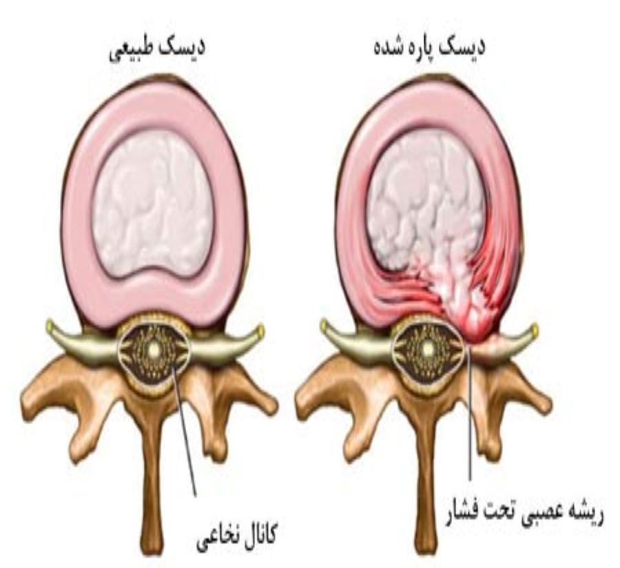 علائم: پارگی دیسک کمر ممکن است بدون علامت بوده و یا با علائم زیر همراه باشد:
